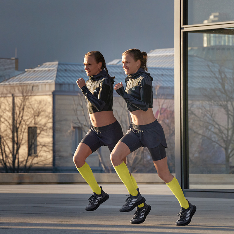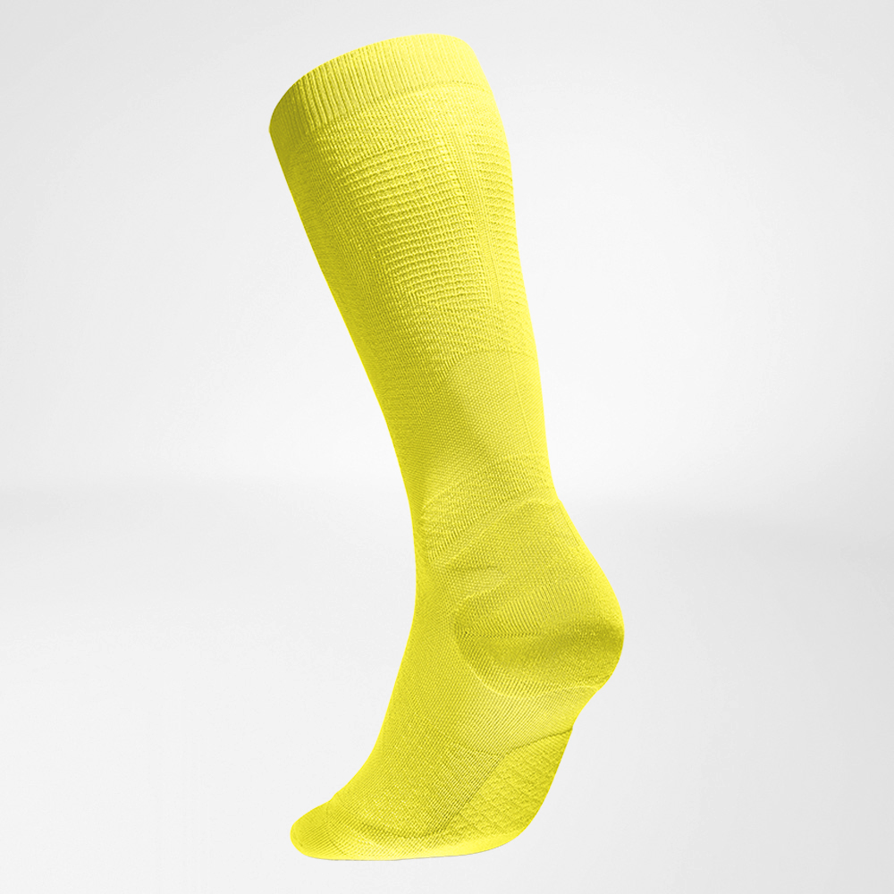 Unique compression zones at the calf reduce muscle vibrations and stimulate circulation. This delays muscle fatigue, and more energy reserves remain available. The “Infinity Zone” offers protection from excessive strain: it slightly raises the foot arches and supports the ankle with gentle pressure. The “Relief Sole” and “Heel Protection” comfort zones are gentle on the sole and reduce the pressure load on the heel as the foot touches the ground in running shoes. The “Achilles Comfort” cutout provides further relief for the Achilles tendon and prevents irritation in this sensitive area.