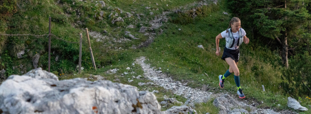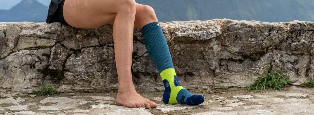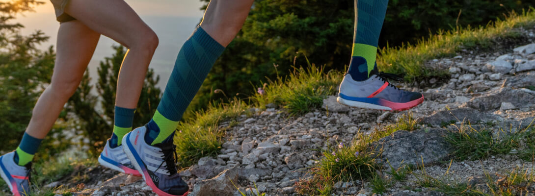 Uphill and downhill with extra power and special stability in the ankle: our brand new trail running compression socks make it possible.